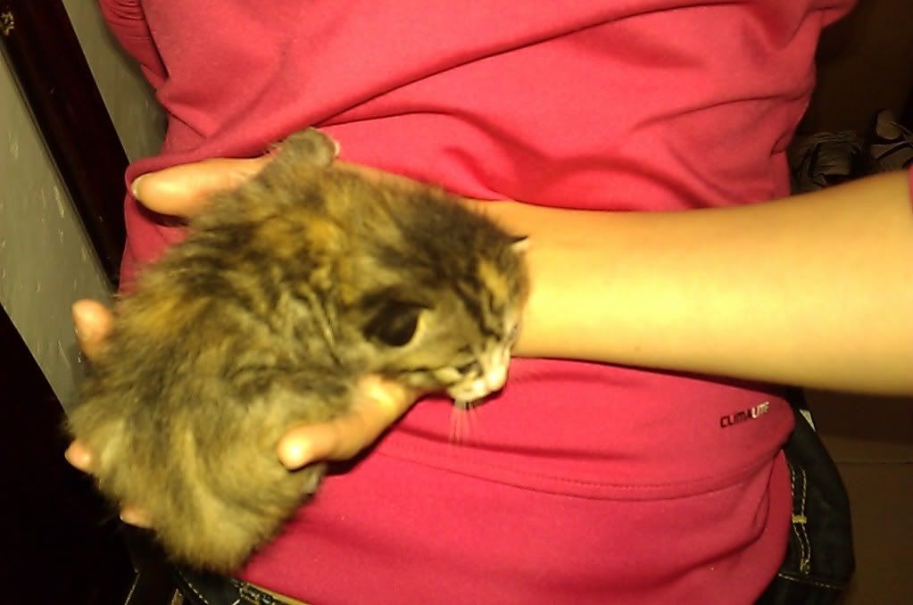 在09年的8月,半夜回家,家门口遇到一之小猫,巴掌大点!4 c% @9 l. B: @3 d) A# x